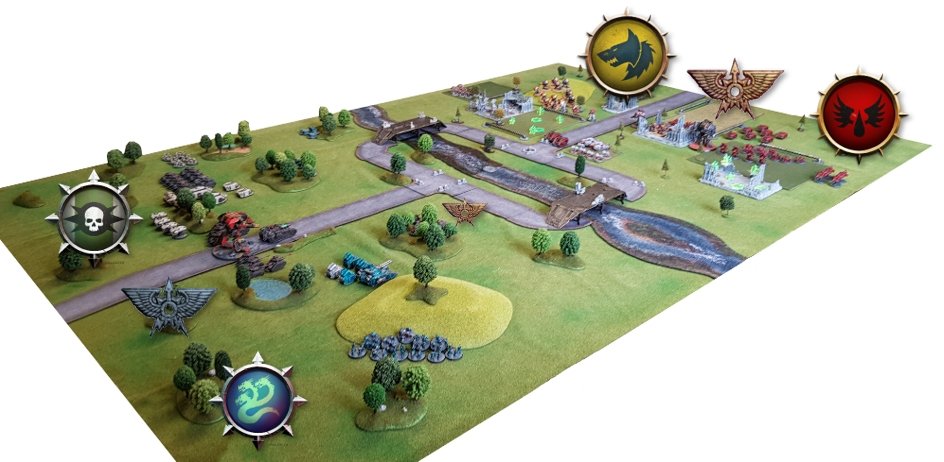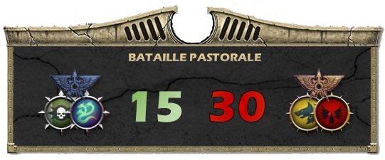 Espérant s'éloigner assez des escouades Terminator ennemies, les Leman Russ Vanquisher et le Warhound avancèrent vers le pont en ouvrant le feu sur les escouades Blood Angels et Space Wolves qui l'occupaient et en leur infligeant de lourdes pertes. Mais les tirs des Space Wolves en armure Saturnine détruisirent plusieurs Leman Russ et parvinrent à abattre les écrans du Warhound et à lui infliger des dégâts importants. Une salve de tirs de Dreadnoughts Deredeo Space Wolves déployés le long de la rivière finirent d'endommager le Titan et son princeps préféra rompre le combat pour préserver sa machine. Les Terminators Blood Angels mirent quant à eux en joue le détachement tactique de l'Alpha Legion et lui infligèrent des pertes sévères. Les renégats sortirent alors leur dernier atout. L'Alpha Legion avait rassemblé des moyens conséquents pour s'ouvrir un passage vers la station astropathique en mobilisant ses propres forces d'élite. Deux grands détachements de Terminators en armure Saturnine se téléportèrent devant le Pont Beta, la XXème Légion était déterminée à s'en emparer ! ![]() C'est au tour des Terminators Saturnine de l'Alpha Legion d'apparaître sur le champ de bataille A la vue de cet ennemi, les escouades tactiques Space Wolves du pont chargèrent ! Mais les combats s'éternisèrent sans qu'aucun des deux camps ne parvienne à l'emporter. ![]() Les escouades Tactiques des Space Wolves chargent les Terminators en armure Saturnine de l'Alpha Legion LE RECUL DES RENÉGATS Les deux camps avaient subi de lourdes pertes et le soleil déclinait. Le Pont Alpha allait tomber entre les mains des renégats mais le destin du Pont Beta restait incertain. Tout le flanc droit des traîtres était cependant toujours pris en étau par les loyalistes. L'état-major renégat décida donc de battre en retraite, les dégâts conséquents infligés à la garnison impériale ouvrant la porte à une nouvelle offensive dans les jours à venir... Les loyalistes sortaient vainqueurs de l'affrontement mais ils savaient que la guerre ne faisait que commencer et que Calven Reach ne serait plus jamais la même ! ![]() ![]() Mission : River Crossing Pont Alpha sous contrôle Renégat (15 points) Pont Beta sous contrôle Loyaliste (15 points) Objectif Secondaire Loyaliste : Vital Intel (15 points) Objectif Secondaire des Renégats : Defiant (0 point)