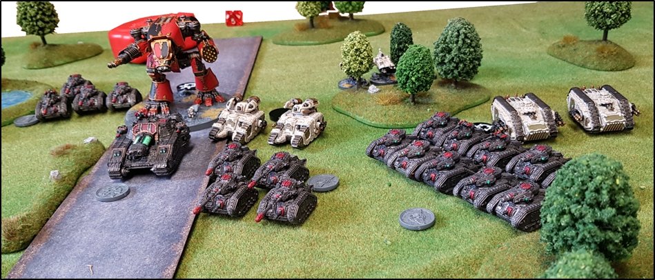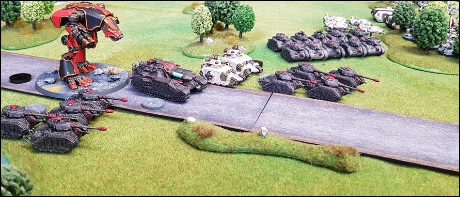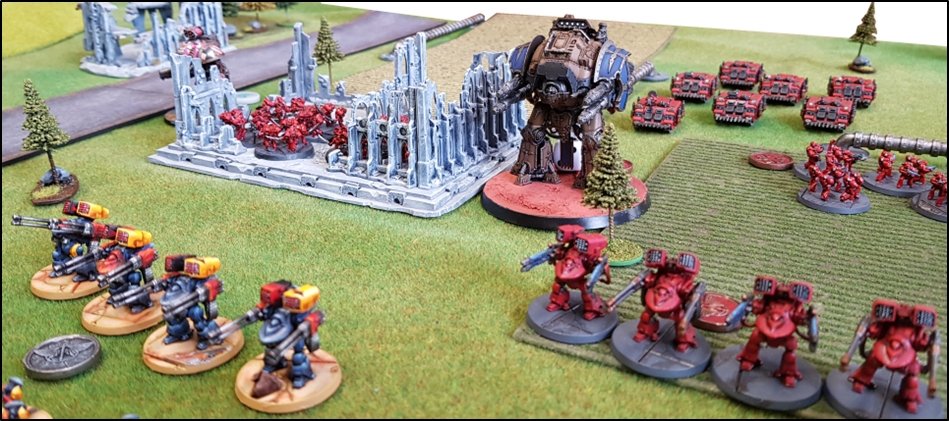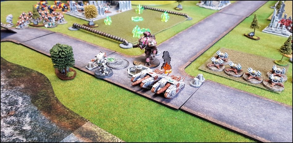 CONFUSION SUR LE PONT BETA ![]() ![]() Les marcheurs lourds loyalistes progressent vers la rivière... ![]() ![]() C'était sur le flanc droit des renégats que les combats furent les plus enragés ! Après avoir détruits les Veletaris embusqués, les renégats avaient repris leur marche vers le Pont Beta sous le couvert des tirs du Warhound Servus Intelligentia de la Legio Mortiferum. ![]() ![]() Un détachement tactique de l'Alpha Legion progresse sous le couvert d'un blindé super lourd de classe Fellblade ![]() Mais les loyalistes s'étaient déjà emparés du pont et ils avaient même
