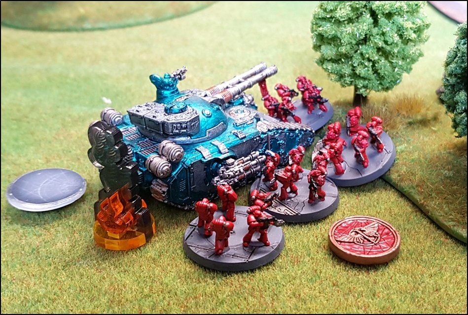 légionnaires Blood Angels sur un blindé super lourd Fell Blade de