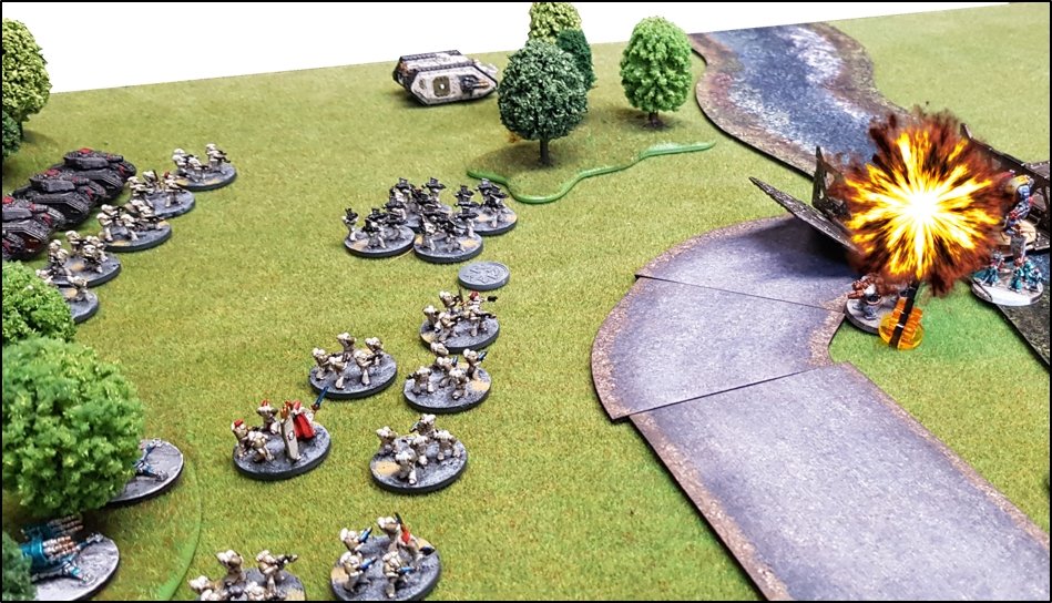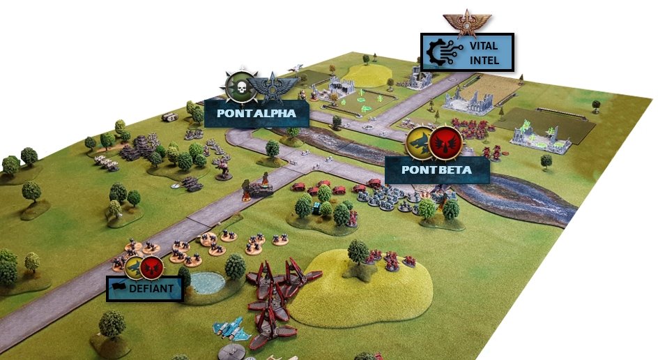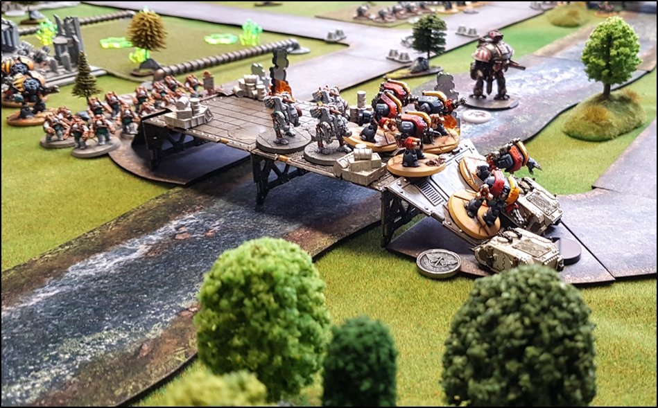 Space Wolves, d'Ogryns et de Sentinelles des Cavaliers des Cendres. ![]() Les troupes loyalistes vont s'emparer du Pont Alpha ![]() ![]() Les intentions impériales semblaient plutôt claires : s'emparer du pont