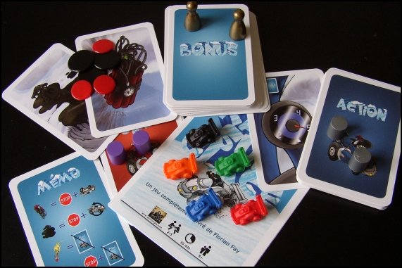 On retrouve également des cartes de jeu (bonus, action) de bonne
