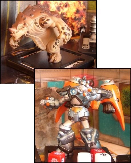 Matériel de qualité donc mais alors pourquoi cette (petite) déception? Tout d'abord, c'est du jeu à collectionner. Ok, c'est pas une surprise mais ça fait quand même mal au portefeuille, même pour quelqu'un comme moi qui ne regarde pas souvent le prix. Et la quantité du contenu est parfois décevante : un Monster Booster ne contient "que" un seul monstre (en version normal et ultra quand même) et pas un seul bâtiment ou unité en renfort. Avec l'ensemble de mes achats, j'ai à peine de quoi faire deux factions (et encore je n'ai que 5 unités dans chacune de ces deux factions) : Terrasaures et GUARD. Je n'ai pas de Monstre pour la Menace Martienne (dommage, j'aimais bien le concept), les Seigneurs de Cthul ou les Mangeurs de Monde, seulement des unités (et encore seulement 2 unités pour les Mangeurs de Mondes). J'ai récupéré 2 monstres pour le Syndicat du Soleil d'Ombre mais seulement 1 unité pour les accompagner... Rien n'empêche de mélanger certaines factions pour jouer, bien entendu, mais je n'aime pas trop le concept pour ma part. Mais le vrai gros problème pour moi vient des règles (à télécharger sur le site officiel si vous êtes curieux). Elles sont bien fichues et solides, à l'image de ce que fait Privateer Press (Warmachine est un bijou dans le genre, je le conseille) mais je n'ai pas eu le coup de coeur, voire même je trouve que les concepteurs sont complètement passés à côté du thème. Ben oui, de gros monstres lachés dans une ville, le tout dans une ambiance cartoon... Ca devrait être délirant, fun, rapide, violent! Alors que les règles sont assez complexes et demandent un gros investissement pour les maîtriser complètement. Bref ce n'est pas du tout ce que j'attends d'un jeu avec un tel thème. |