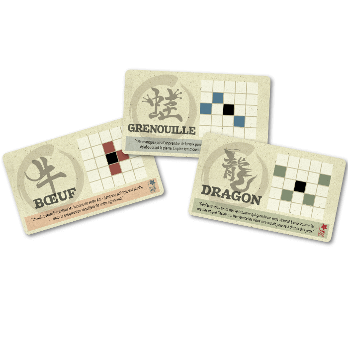 complètement à armes égales. |  | Chaque joueur dispose d'un Maître et de quatre Apprentis. La victoire peut être acquise de deux manières différente :