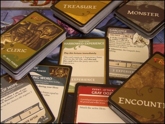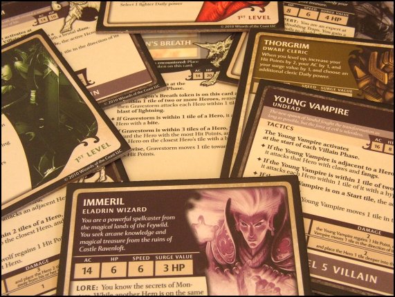 Enfin, on finira le tour du matériel avec les dizaines de cartes à jouer : trésors, monstres, pouvoirs spéciaux des personnages et autres cartes d'événements. On regrettera le côté un peu tristounet de ces cartes qui manquent un peu d'illustrations mais elles ont le mérite d'être très claires et par conséquence sont très efficaces en cours de jeu.