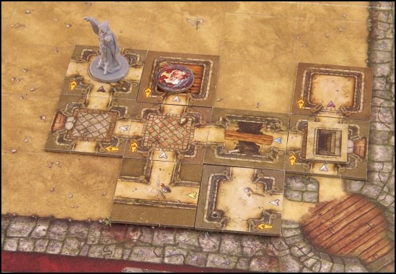le joueur tire au hasard une tuile du donjon et la place sur le plateau