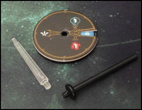 à droite un socle pour Battlefleet Gothic de Games Workshop