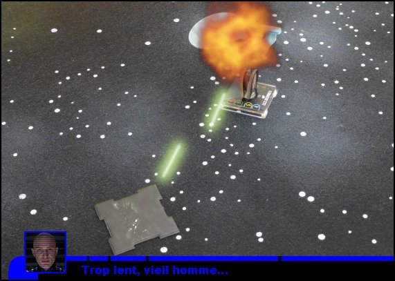 tous les atouts de vos navires. Relevez la tête, cadet! Vous êtes à l'Académie de Star Fleet, si vous souhaitez un jour commander votre propre vaisseau stellaire il va falloir apprendre à relever les défis! Je vous revois demain pour un nouvel essai. |