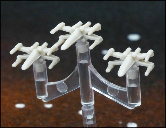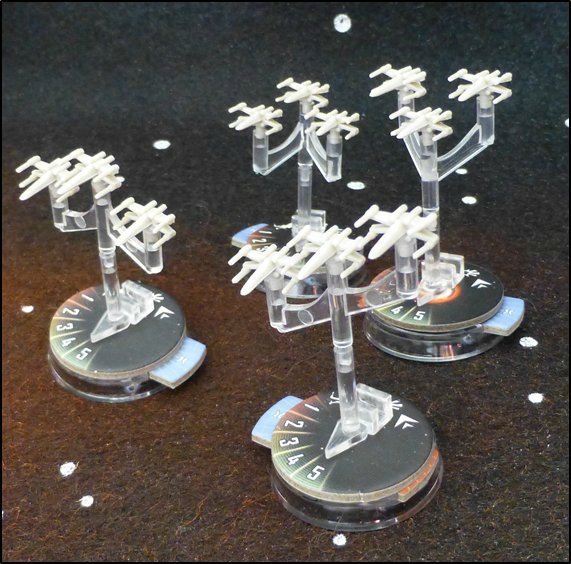 Quatre escadrons de chasseurs X-Wing escortent les vaisseaux rebelles. Contrairement aux Chasseurs TIE, ils sont peu nombreux mais presque deux fois plus résistants.
