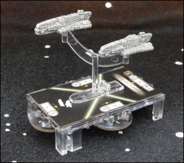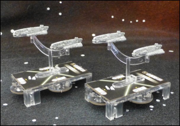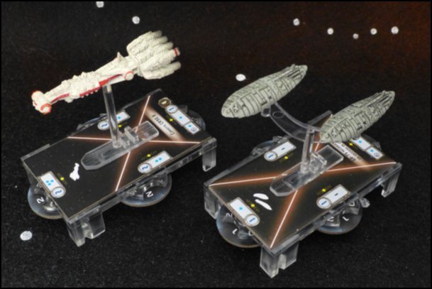 La troisième vague de figurines pour Star Wars : Armada introduit une nouvelle unité : les flottilles. A mi-chemin entre l'escadron de chasseurs et le vaisseau de ligne, la flottille représente des vaisseaux trop petits pour être considérés comme des vaisseaux de ligne à part entière mais trop gros pour être pris en compte comme des chasseurs. Du point de vue des figurines, une flottille est représentée par deux vaisseaux sur un petit socle de vaisseau de ligne. Du point de vue des règles, la flottille se comporte comme un vaisseau de ligne à l'exception du fait que lorsque son socle chevauche ou se fait chevaucher, elle subit une carte de dégâts face cachée. On sera particulièrement déçu de constater que les quelques règles de ces flottilles ont été imprimées sur l'emballage de l'extension (attention à ne pas le déchirer en ouvrant le blister !). Cela ajoute encore une feuille volante différente à la liste des supports de règles du jeu... ![]() Corvette Corellienne à gauche et Flotille de Transports Rebelles à droite FLOTTILLE DE TRANSPORTS REBELLES Le Cargo moyen Gallofree GR-75 est un vaisseau de transport très répandu dans la galaxie durant la Guerre Civile Galactique et particulièrement populaire au sein de l'Alliance Rebelle malgré son faible armement. Les figurines en plastique fournie dans cette extension sont de bonne qualité avec une gravure correcte. Le travail de peinture est cependant non seulement minimaliste mais utilise de plus un schéma de couleurs peu adapté (grisâtre là où on l'attend plutôt dans des nuances plus "crème"). Certains joueurs préfèreront certainement les repeindre pour qu'elles collent mieux avec ce que l'on peut voir dans la saga au cinéma. Sans surprise la flottille de Transport Rebelle n'est pas faite pour combattre : elle est pratiquement désarmée et peu résistante. Sa principale force est sa capacité de soutien aux escadrons de bombardiers et aux vaisseaux alliés. On la verra donc principalement roder derrière les vaisseaux de ligne rebelles ou au milieu d'un essaim d'escadrons. ![]() ![]() ![]() "Les premiers transports sont passés !" FLOTTILLE DE CROISEURS DE CLASSE GOZANTI Le Croiseur Léger de classe Gozanti fut créé du temps de l'Ancienne République et servit de transport blindé anti-pirates. Lors de l'avènement de l'Empire, il fut reconverti pour pouvoir transporter des chasseurs TIE et des troupes armées. Une flottille de croiseurs de classe Gozanti est représentée par des figurines en plastique à la gravure basique (à l'image du vaisseau original essentiellement vu dans la série Star Wars Rebels) peintes d'une manière simple mais très efficace. On regrettera juste, tout en comprenant la difficulté à le faire, que les figurines en question ne représentent pas les croiseurs avec des chasseurs TIE accrochés à leur ventre. Avec seulement 3 points de coque et une puissance de feu ridicule, cette flottille de croiseurs n'est pas taillée pour le combat direct. Malgré une manoeuvrabilité limitée, elle profitera plutôt de sa bonne vitesse pour se maintenir à distance raisonnable de l'ennemi tout en utilisant sa panoplie d'upgrades pour soutenir les escadrons de bombardiers et vaisseaux alliés ou pour gêner les unités ennemies. Les Croiseurs de classe Gozanti seront donc l'épine dans le pied de l'ennemi qu'il faudra savoir manier avec subtilité. ![]() ![]() ![]() Affrontement entre l'Empire et les rebelles dans le secteur de Lothal EN CONCLUSION Loin d'être incontournable, cette mini-vague 3 est plutôt orientée tournoi car les flottilles proposent de nombreuses façons de booster les flottes compétitives. Malgré tout les joueurs occasionnels y trouveront quand même leur bonheur avec deux unités popularisées par la saga au cinéma et la série Star Wars Rebels.