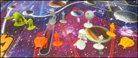 plateau représente la galaxie de Star Wars : on y retrouve les planètes