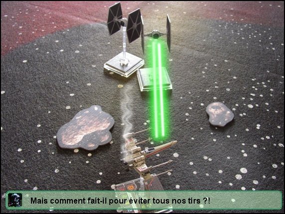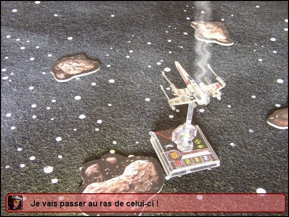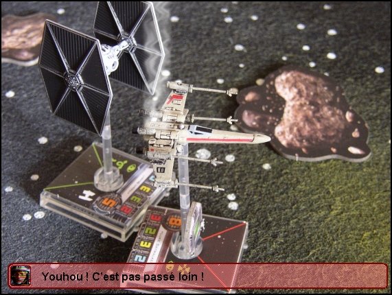 Les chasseurs TIE et le X-Wing virevoletaient entre les astéroïdes tout en échangeant des volées de tirs! Pour réussir à se placer au mieux face à l'adversaire, chacun des pilotes n'hésitait pas à prendre des risques insensés et manquait à chaque manoeuvre de percuter un bloc de roche géant voire un autre chasseur...