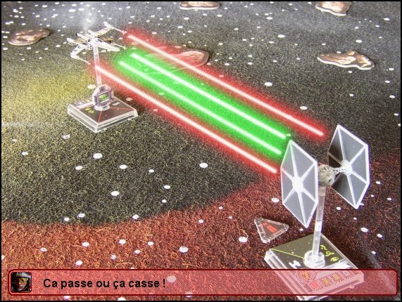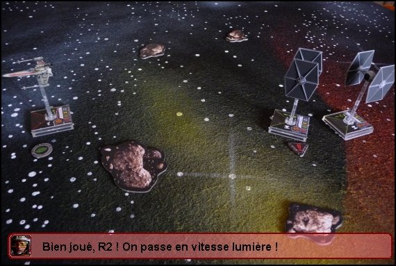 Une tirade sifflotée par R2-D2 informa alors Luke Skywalker que l'hyperdrive serait bientôt réparé. Le rebelle décida alors de s'éloigner du champ d'astéroïdes pour pouvoir passer en vitesse lumière. Mais sa manoeuvre avait été anticipée par l'un de ses poursuivants! Le X-Wing fonçait tout droit vers le chasseur TIE de son adversaire!