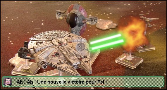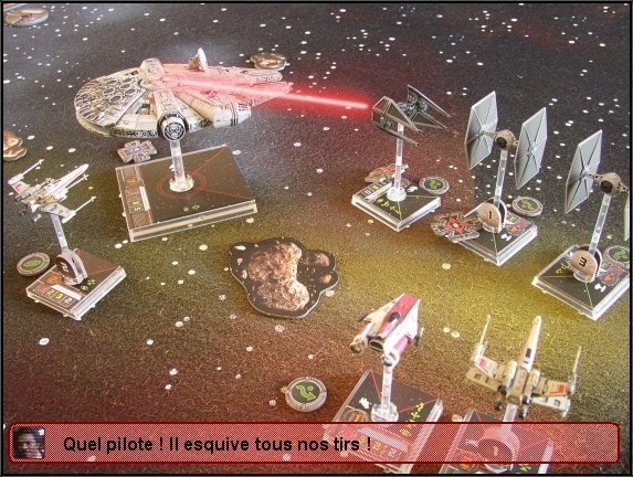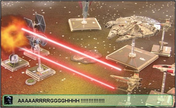 Malgré les prouesses techniques de son chasseur, Blue-A ne parvint pas à se défaire du TIE Intercepteur de Soontir Fel. Le manque d'expérience des pilotes rebelles commençait à coûter cher à l'Alliance!