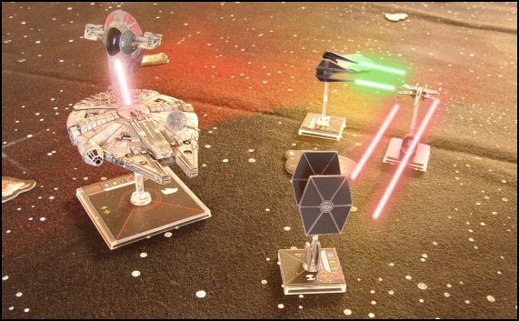 Alors que le Slave I se rapprochait à pleine vitesse, les deux escadrilles se lancèrent l'une contre l'autre en faisant feu de tous leurs canons. Le X-Wing piloté par Blue-1 perdit tous ses écrans mais un chasseur TIE reçut plusieurs dégâts en retour. Le TIE Intercepteur piloté par Fel parvint à éviter avec adresse tous les tirs qui le visait!