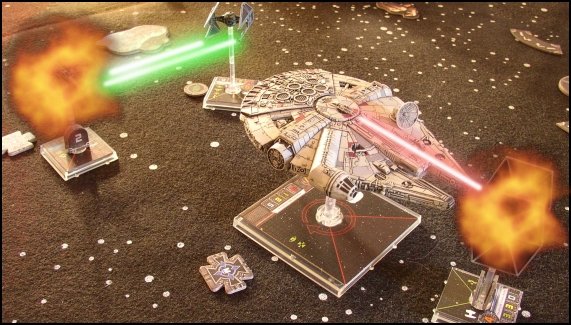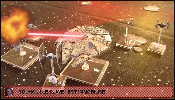 Arrivé à portée de tir, le Slave I entra à son tour dans la danse en prenant pour cible le Faucon Millenium dont il affaiblit les écrans!