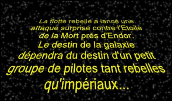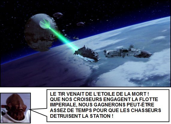 contre l'Etoile de la Mort. ![]() Mais comment ils peuvent nous brouiller s'ils ne savent pas... que nous arrivons - Gold Leader L'Empire Galactique brouillait