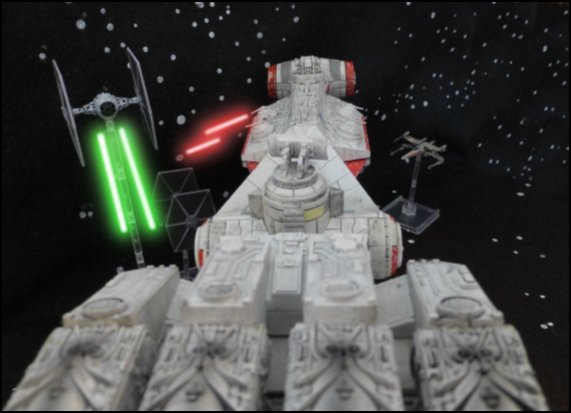 révèle bien plus polyvalente et, logiquement, plus intéressante à jouer. LA CAMPAGNE Le mécanisme de la campagne est quant à lui très différent de celui du Transport Rebelle. Il s'agit en effet d'une campagne arborescente qui propose des missions différentes en fonction de l'identité du vainqueur de la mission jouée. Les campagnes arborescentes bénéficient généralement d'une bonne rejouabilité malheureusement ce n'est pas le cas ici car au final que cela soit l'Empire ou l'Alliance qui gagne une mission, le récit de la campagne varie assez peu. Cela est renforcé par le fait que la mission finale est imposée quel que soit le déroulement de la campagne... Malgré tout cette campagne est rendue bien plus intéressante que celle proposée pour le Transport Rebelle car ses missions sont plus variées : la corvette sera pourchassée, attaquée alors qu'elle est en cours de réapprovisionnement dans une station spatiale, en poste pour intercepter une transmission importante ou à la pointe de l'attaque lors d'une tentative de forcer un blocus impérial... Attention, logiquement, il faudra aux joueurs beaucoup de chasseurs (en particulier jusqu'à 7 TIE Fighters) pour jouer la campagne ainsi qu'une surface de jeu allant jusqu'à 90x180cm ! ![]() EN CONCLUSION